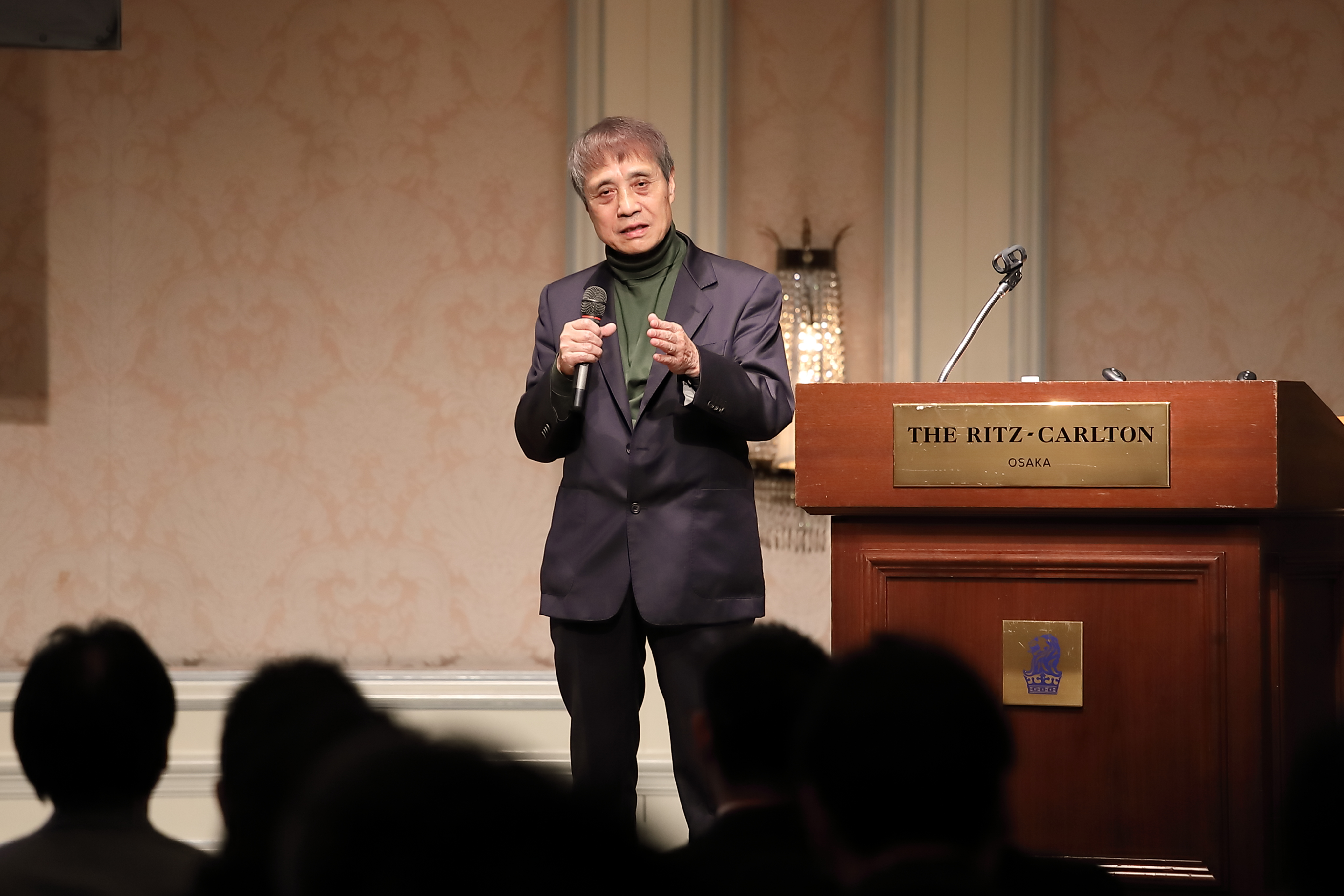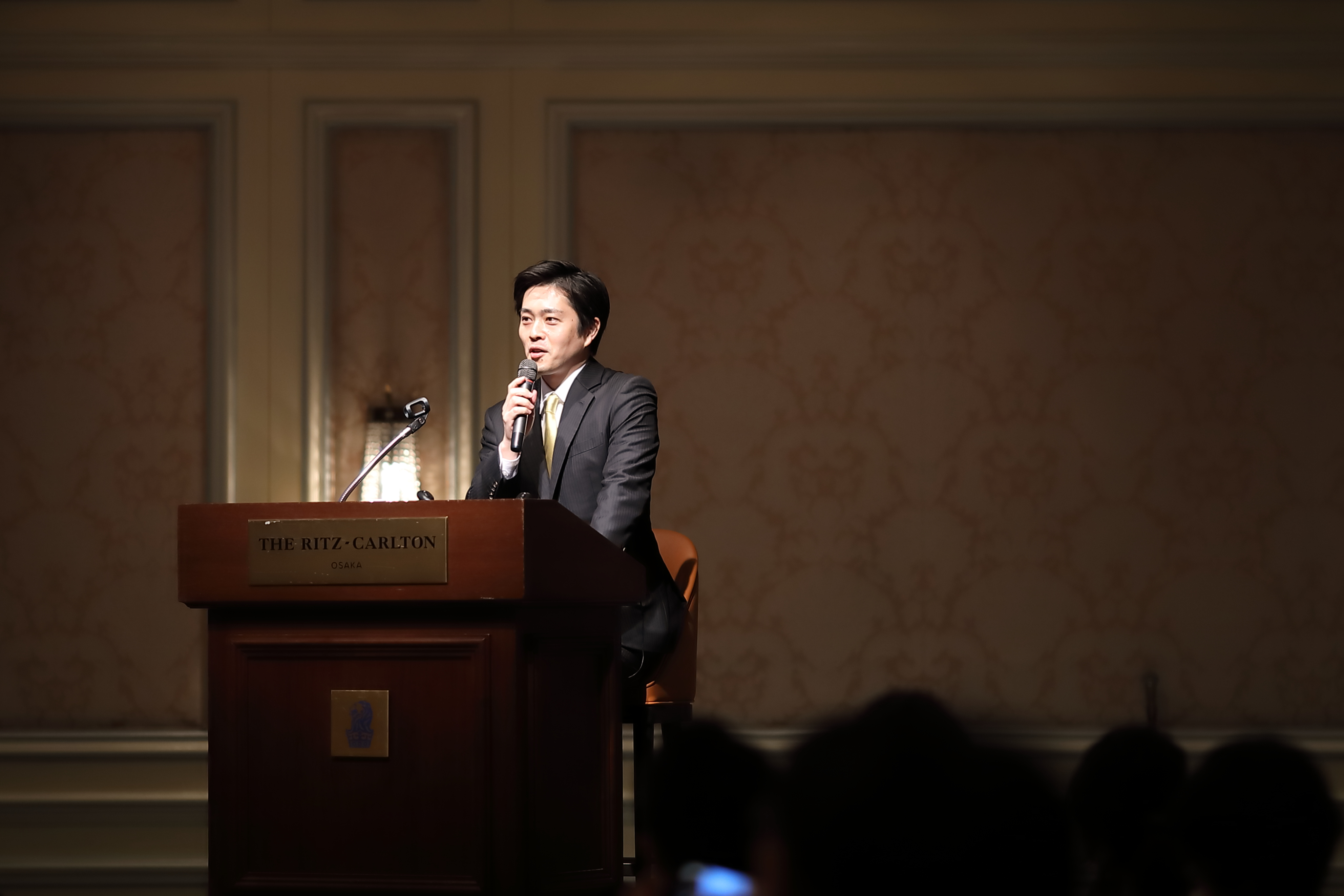 リッツ・カールトン大阪でのパーティーではキーノート講演が行われまして、大阪府の吉村知事、建築家の安藤忠雄先生の講演が行われました。