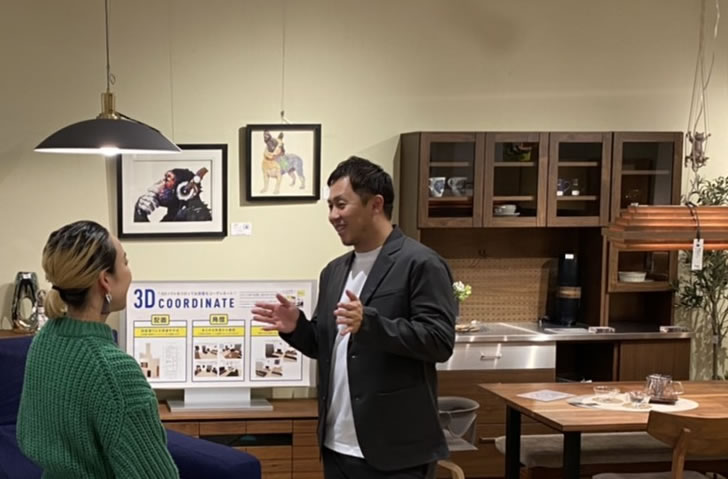 例えば、「ソファーが欲しい」とやってきたお客様に、単純にソファーを提案するのではなく、何故ソファーが欲しいのか?必要な理由を徹底してヒアリングし、最適な条件の選定と提案をします。