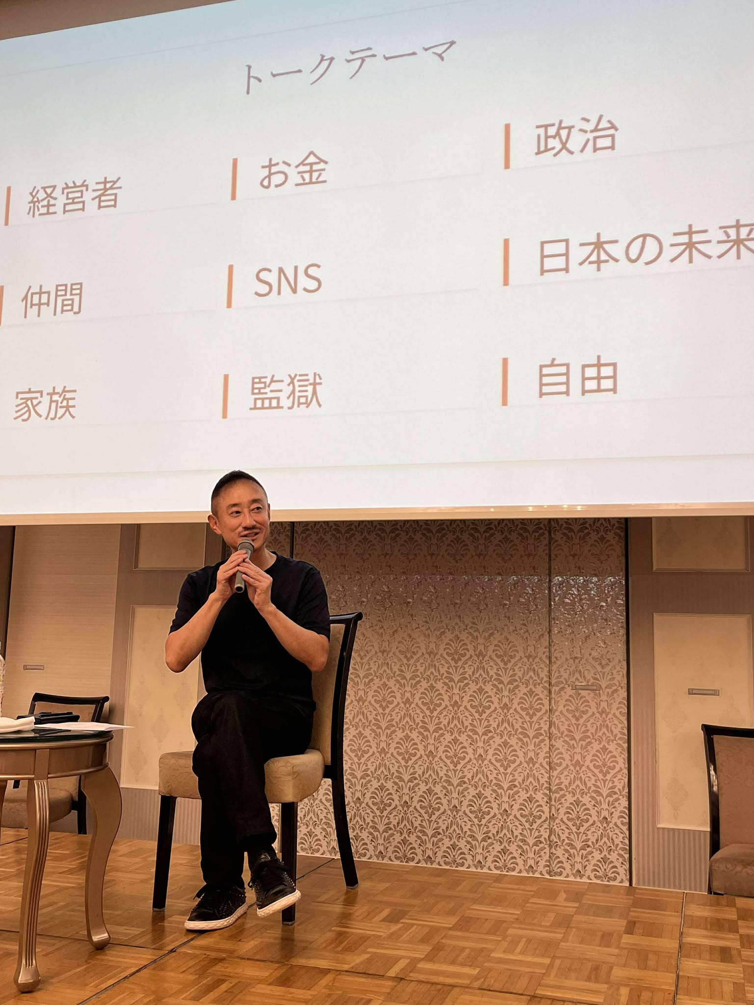 テーマは自由演題ながら、「経営・お金・政治・仲間・SNS・日本の未来・監獄」と幅広く展開され、その独自の視点と率直な言葉に、会場は終始引き込まれました。