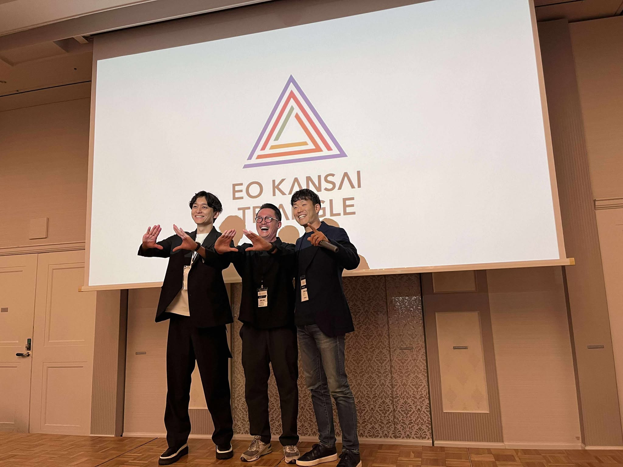 また、約20案に及ぶロゴデザインが提案され、最終的に「トライアングル」を象徴する案は、三都の結束「関西からアジアへ、そして世界へ。次の15年で“世界の前進に資するEO関西”を創る」を意味し、新しい象徴となりそうです。