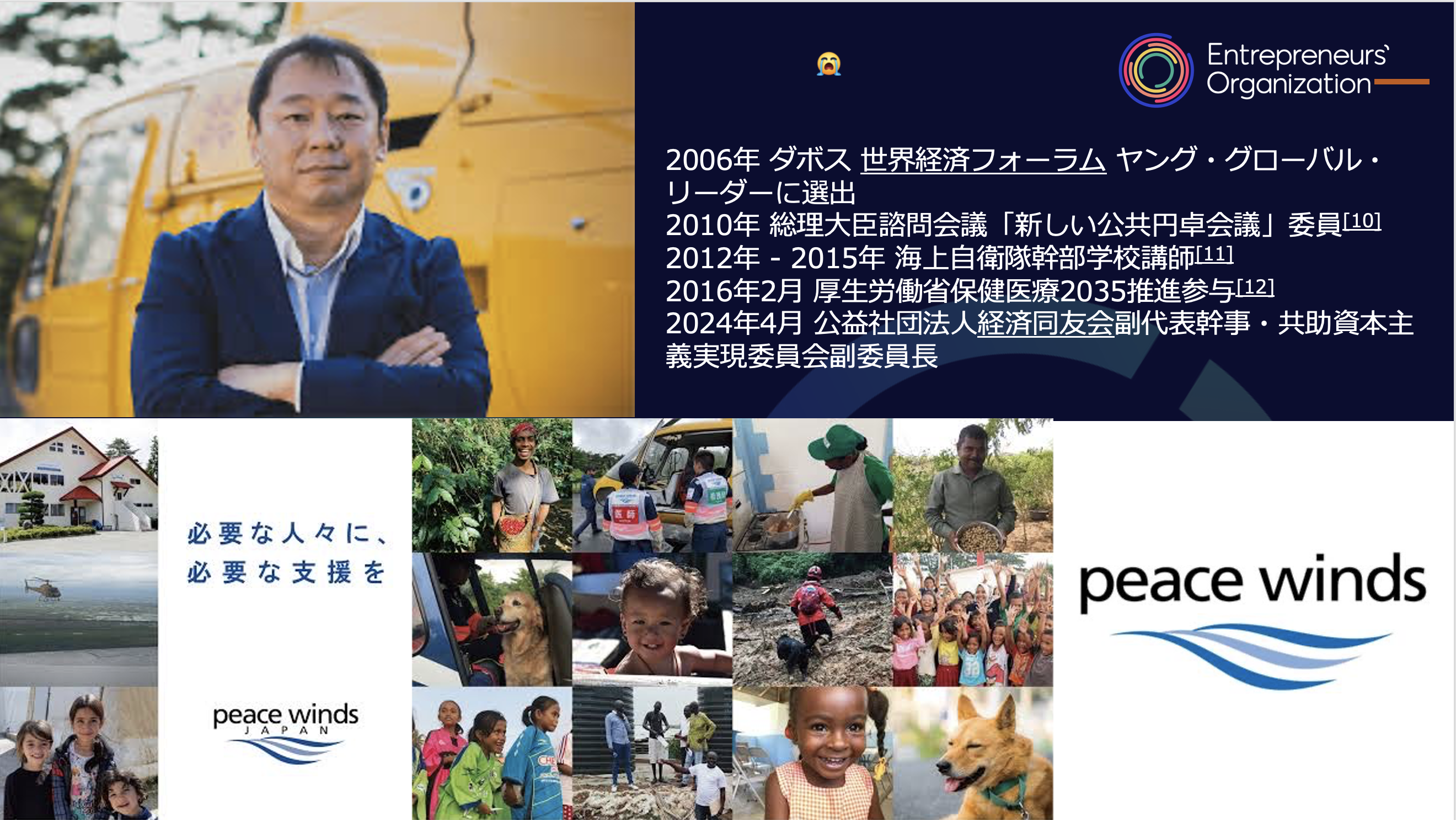 「特定非営利活動法人ピース ウィンズ・ジャパン代表理事大西 健丞様による特別公演」