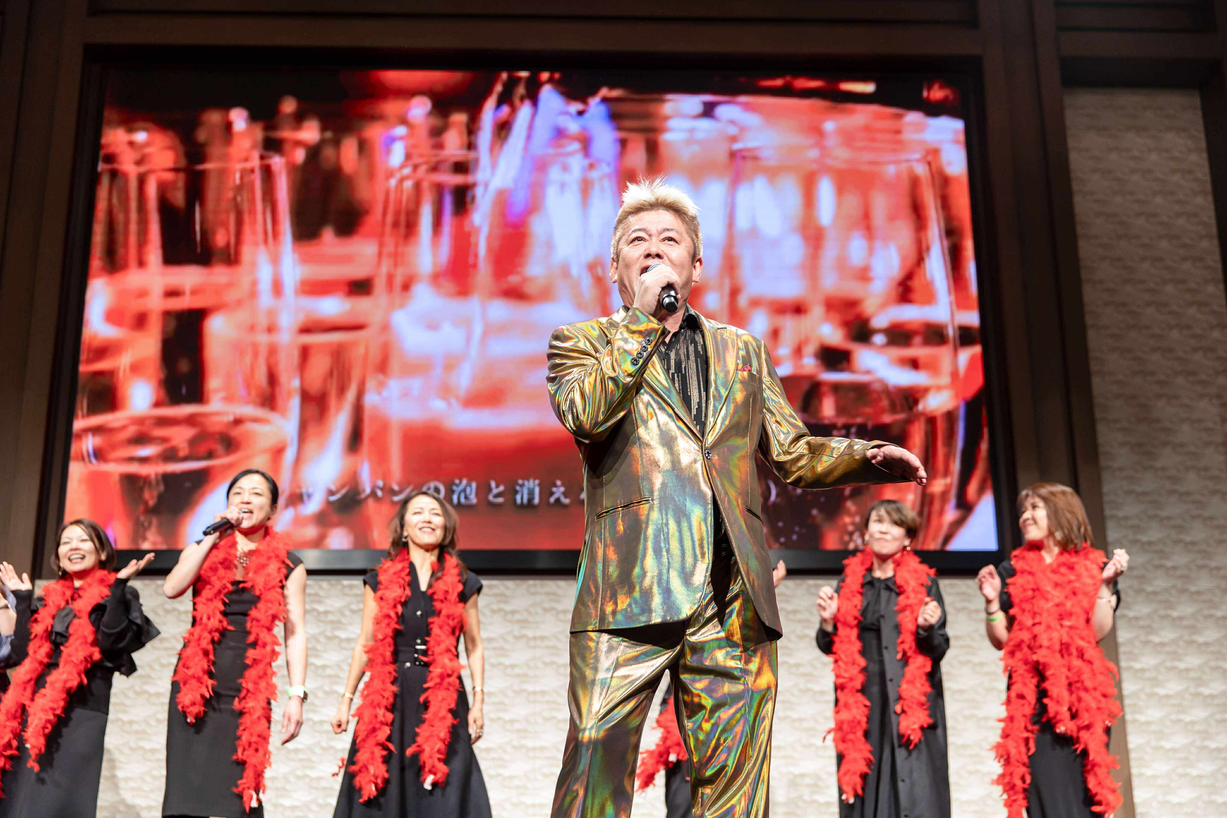 懇親会では堀江さんの歌唱披露も!